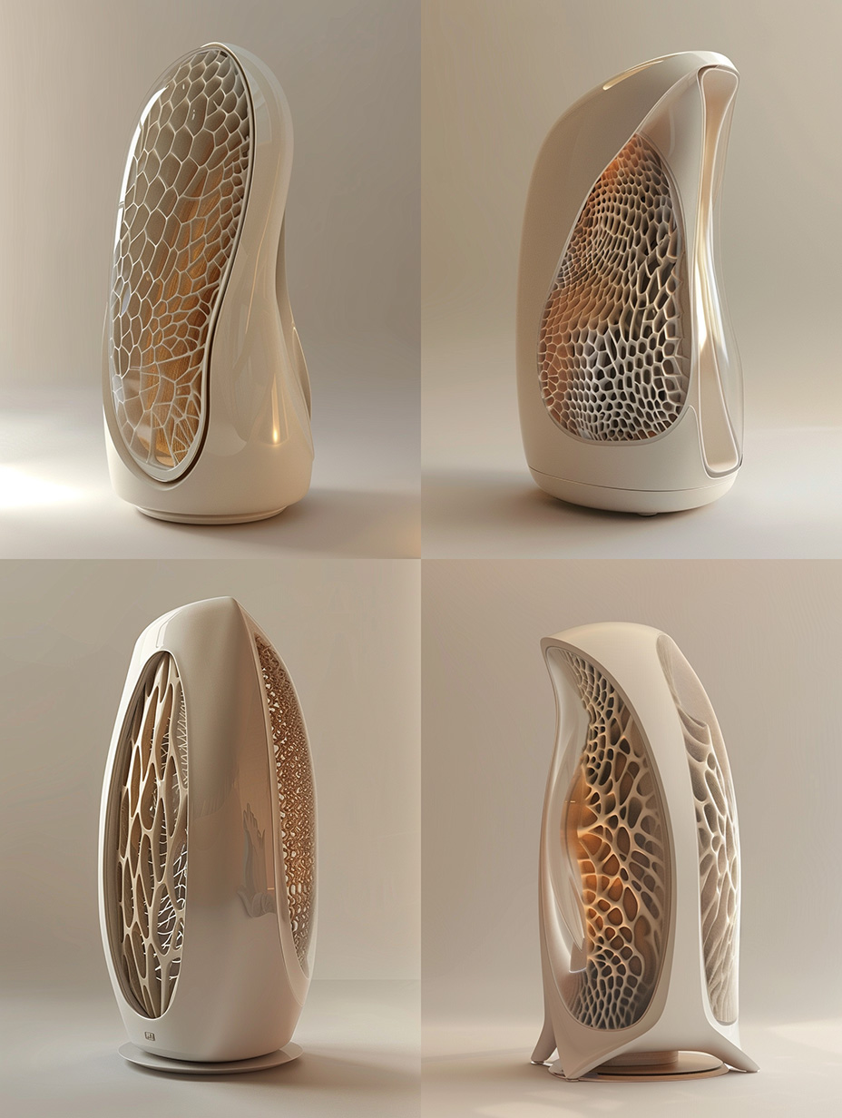 Drift envisions lightweight, recyclable polymers for its housing, paired with porous ceramics or natural fibers for efficient evaporative cooling. Heat-resistant finishes ensure comfort and aesthetic appeal, while modular components support portability and maintenance.